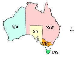 The codes used for Australia are the accepted post office state codes prior to the introduction of postcodes.