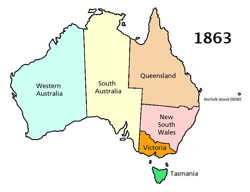 Independent of NSW. Western border 141E extended 13 Mar 1862 to present day position.