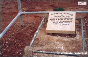 Lyndhurst is north of Copley on the junction of the road to Marree and the Strzelecki Track; the cemetery is just east of the town off the Strzelecki Track.