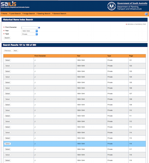 Earlier indexes are handwritten and you need to read the title numbers carefully! From 1904 onwards they are typed. Page 116 looks like this: