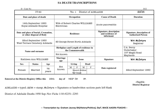Delving deeper into the material located than just a surface skim can provide the essential clue to open up new avenues of research. This may sound like an obvious statement but long experience in family history research suggests that many are not aware and certainly do not employ the technique. Of course for the most part this strategy only works with original material. Unfortunately many family historians remain satisfied with secondary transcribed material. Often transcriptions are very shallow and only reveal what the transcriber thinks is the genealogical data. As a case in point my local genealogy society has transcribed birth, marriage and death civil registration records for South Australia and they are now online via FindMyPast.