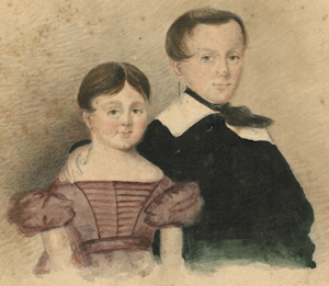 Examine the adjacent image taken from one of my older photo albums. What do we see? A boy and a girl dressed in costumes that pre-date the advent of photography and little else. No captions, nothing written on the back and no label in the album. Who are they? Clearly the period has to occur before 1841 when even an expensive daguerreotype was cheaper than engaging an artist. This statement could be seen as little more than an assumption because the advent of new technology does not mean the old is immediately dispensed with for a whole range of reasons. However, in this case the clothes seem to suggest that the painting does predate photography. The girl's dress is a style seen in France in 1830 and later in England while the boy has a loosely tied cravat rather than the tie we know today and this style of tying a cravat was certainly evident in England in 1835. The task then is to determine if any family had a boy and a girl in the range of about 6 to 10 years of age at this time. It would seem likely they had no other children because surely they would have been included as well—or would they? It rather depends on what the event was. There is just one family in my ancestry that fits this pattern and it is aided by the fact that the same album contains many later photographs of this family. John Henry Puttick b. 12 October 1830 and Mary Jane Puttick b. 21 March 1833 were the eldest two children of John and Mary Puttick of Kirdford Sussex. The next child was born November 1837 and so we can expect that if these are the children depicted then the work was undertaken before November 1837. The father, a mercer and later an auctioneer in St Helier on Jersey could certainly afford to commission such a work. Without more work the research is at a stage where the subjects have not been confirmed but we have a strong likelihood we have identified the subjects.