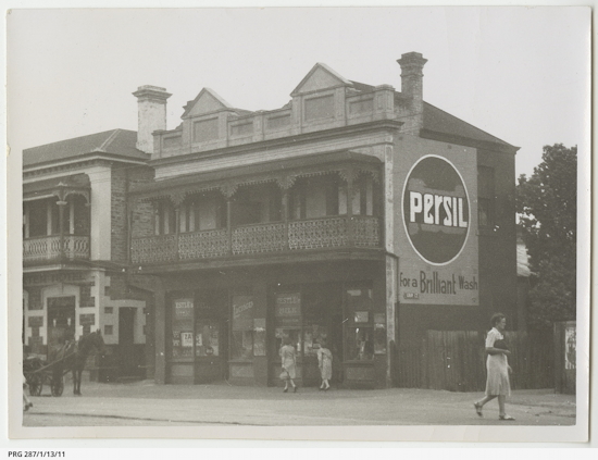 Above: Sturt Street was a shopping precinct—a grocers store at 188-90 next to the Star & Garter hotel (north side and across the road, since demolished and occupied by Rexel Electrical Supplies):: SLSA PRG-287-1-13-11 - ca1945)