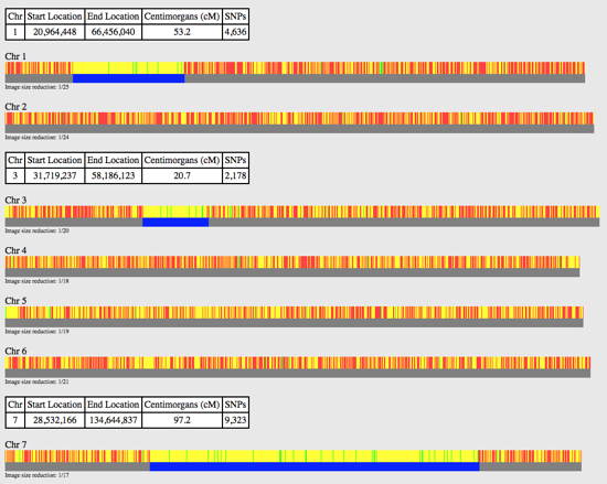 Pictured: Graham Jaunay's Chromosomes 1 to 7 matched against Philip B a known 2nd cousin..