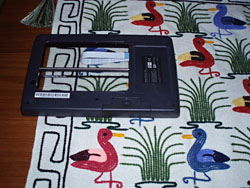 Just how is it possible to use a tiny scanner to scan large items. Well it is simply a matter of clipping off the lid, flipping the scanner over and placing it on the original. Take multiple scans making sure there is some overlap on all sides. You can see through the scanner and see the area being covered in the scan. It is just so easy. Large picture in a frame under glass—no problems—just put the picture frame and all flat on the kitchen table and away you go! Need to scan some small items like medals. Not a problem just place them on the glass and step back!