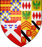 The most obvious place for these arms was the shield and the knight’s surcoat. This was a surcoat of linen, split up the sides, which knights wore over their chain mail body armour, and which, when so adorned on the back and front, gave rise to the term coat of arms. Arms on banners or flags also served as rallying points on battlefields. Some scholars believe that arms have their origins in personal seals as, with large numbers of the population illiterate, including the knights themselves, this was a useful method of visual identification when it became necessary to sign anything. Often a knight’s counterseal was based entirely on their arms. Most of the early arms used by these medieval knights were very simple in design so, in very general terms, the simpler the design of the arms, the more likely they are to be a sign of ancient lineage. Compare the arms above right to those above. These are the arms of Richard Neville, 16th Earl of Warwick and date 1449 and demonstrate the growing complexity over time.