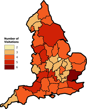Most counties in England had at least three separate Heralds Visitations during the sixteenth and seventeenth centuries. A few had four or more. See adjacent map.