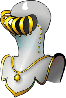 4. Wreath or torse—the torse sits upon the helm and always has six twists. Its colours are those of the main colours depicted on the shield. Like all these items the torse was originally part of an armoured knights' apparel. In this case the torse was worn on the head to protect the skull from the helmet.
