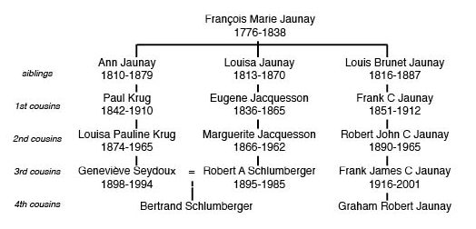 By the way, some of you may be asking how can Bertrand Schlumberger be the great-great grandson of two sisters. This chart may clarify: