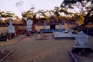 Overland Corner is located on the north bank of the River Murray off the highway approximately midway between Wakerie and Barmera. The cemetery is well away from the town on the main highway.